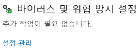 바이러스 및 위협 방지 설정을 찾고 설정 관리를 클릭합니다.