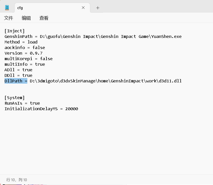 9.将复制的内容粘贴在DllPath =之后,保存即可。