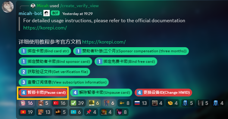 1. 点击〖4️⃣ 暂停卡密(Pause card)〗**