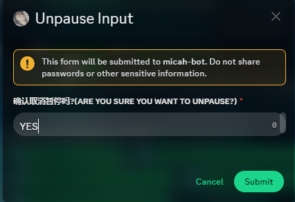 2. 在弹出的窗口输入框处输入『YES』(全大写),并点击Submit即可