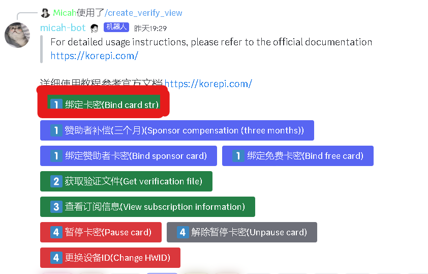 1. 点击〖1️⃣ 绑定赞助者密钥(Bind sponsor card)〗