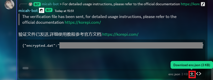 5. 下载enc.json文件,将文件放在korepi文件夹中。