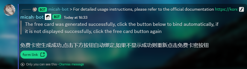 1. 点击〖1️⃣ 绑定免费卡密(Bind free card)〗。自动跳转看广告获取免费卡密。